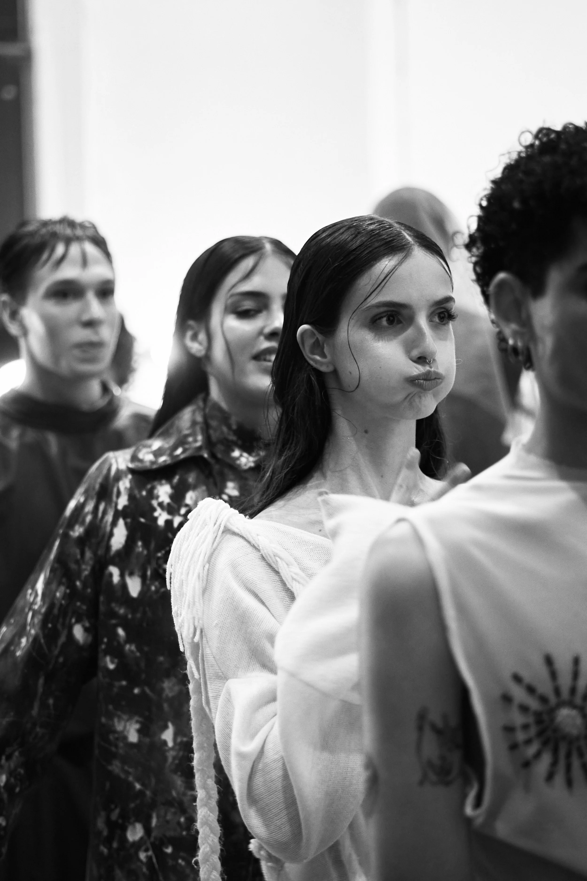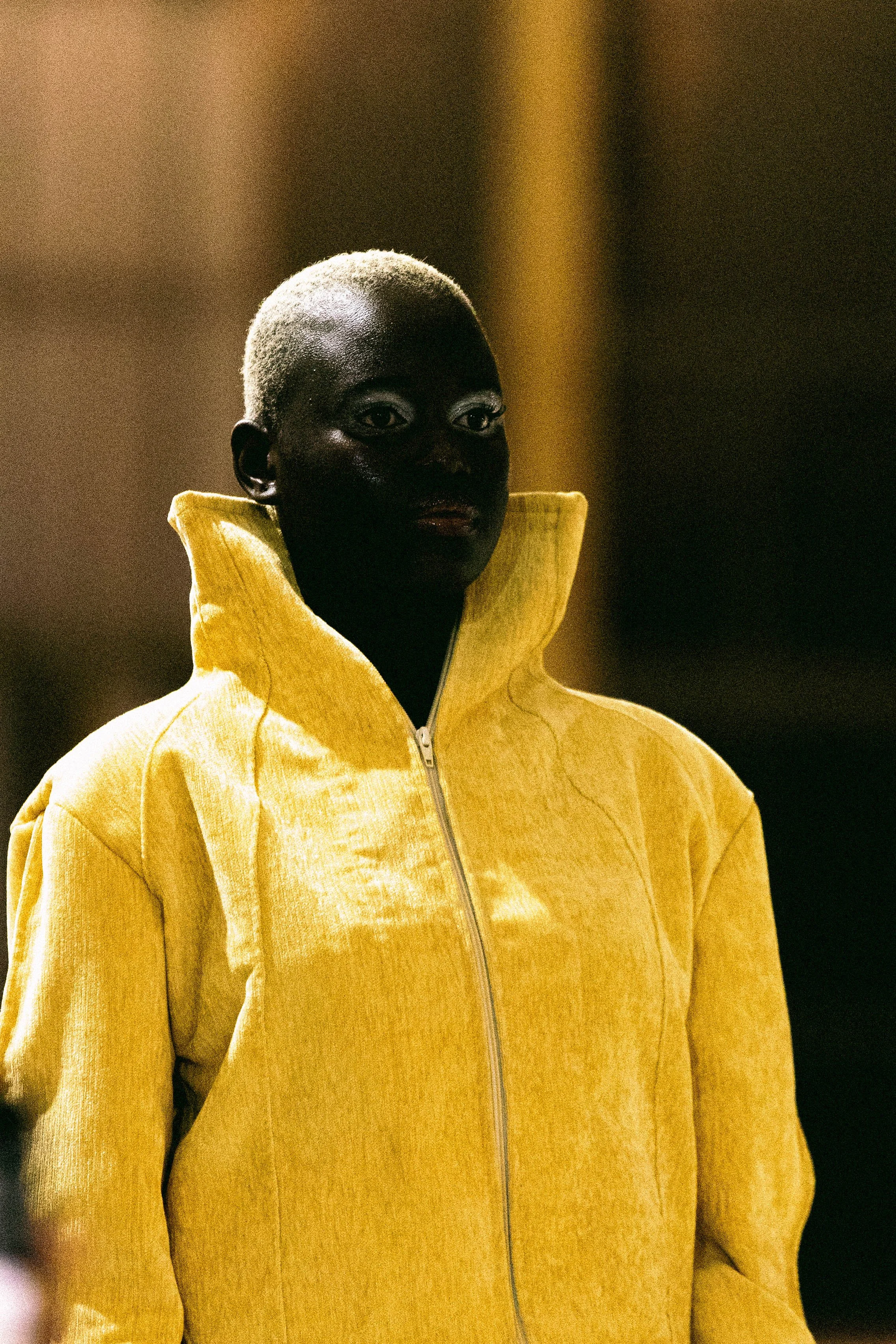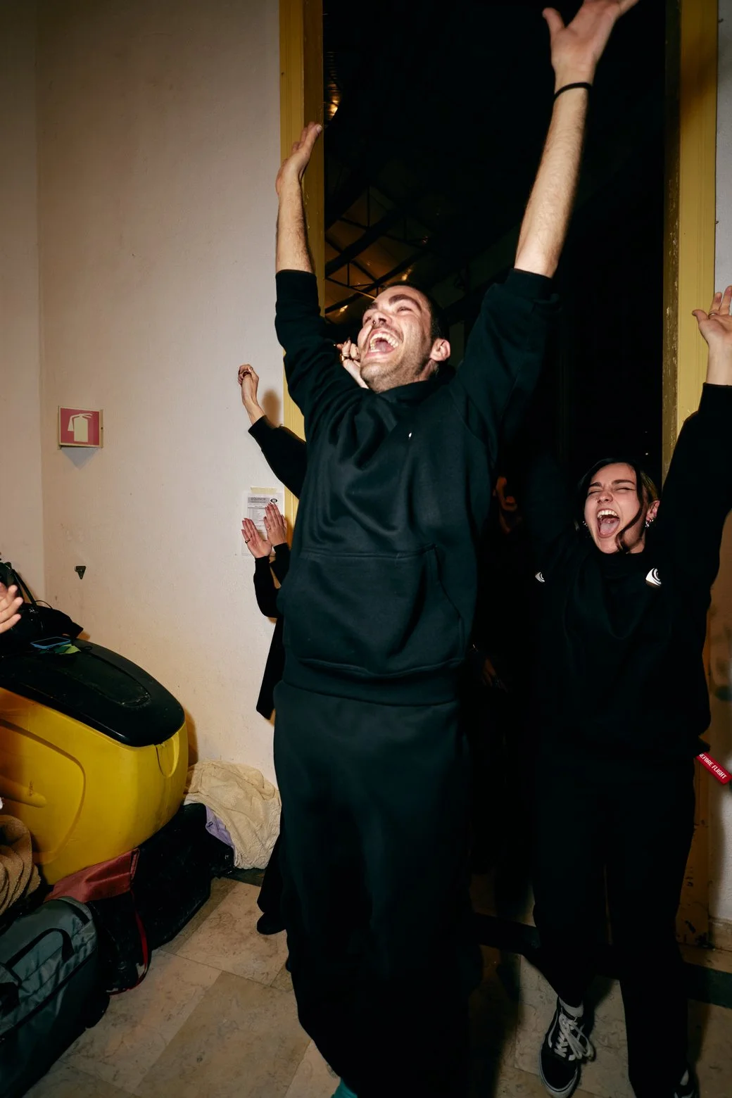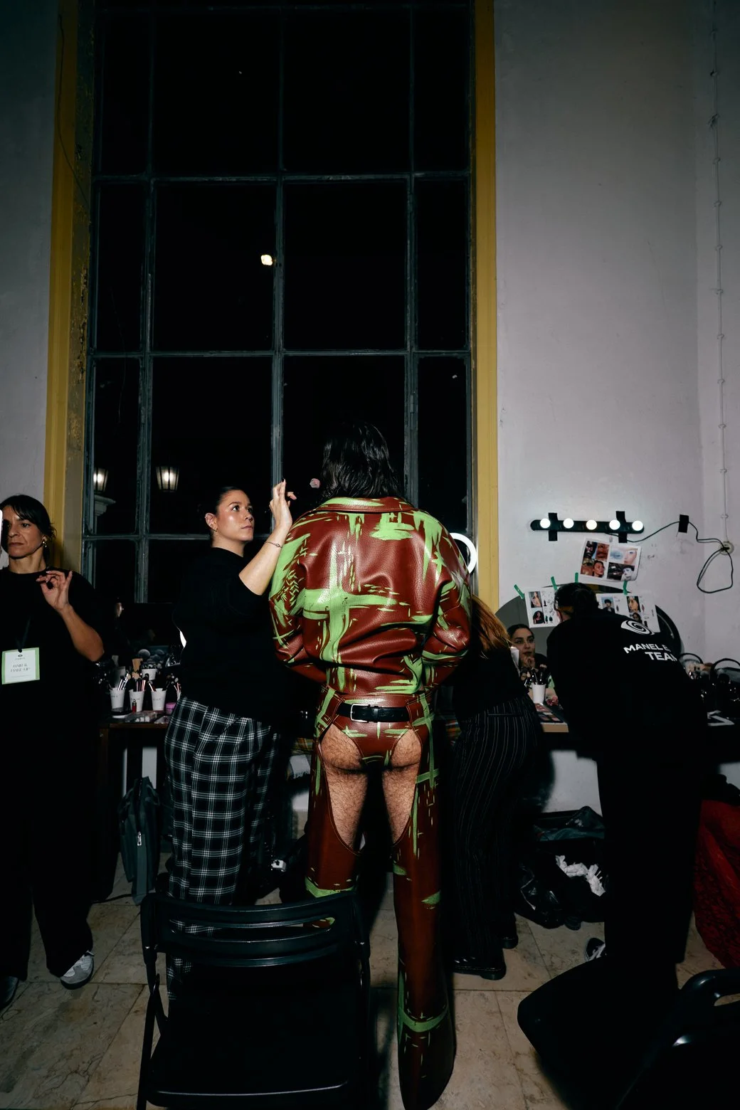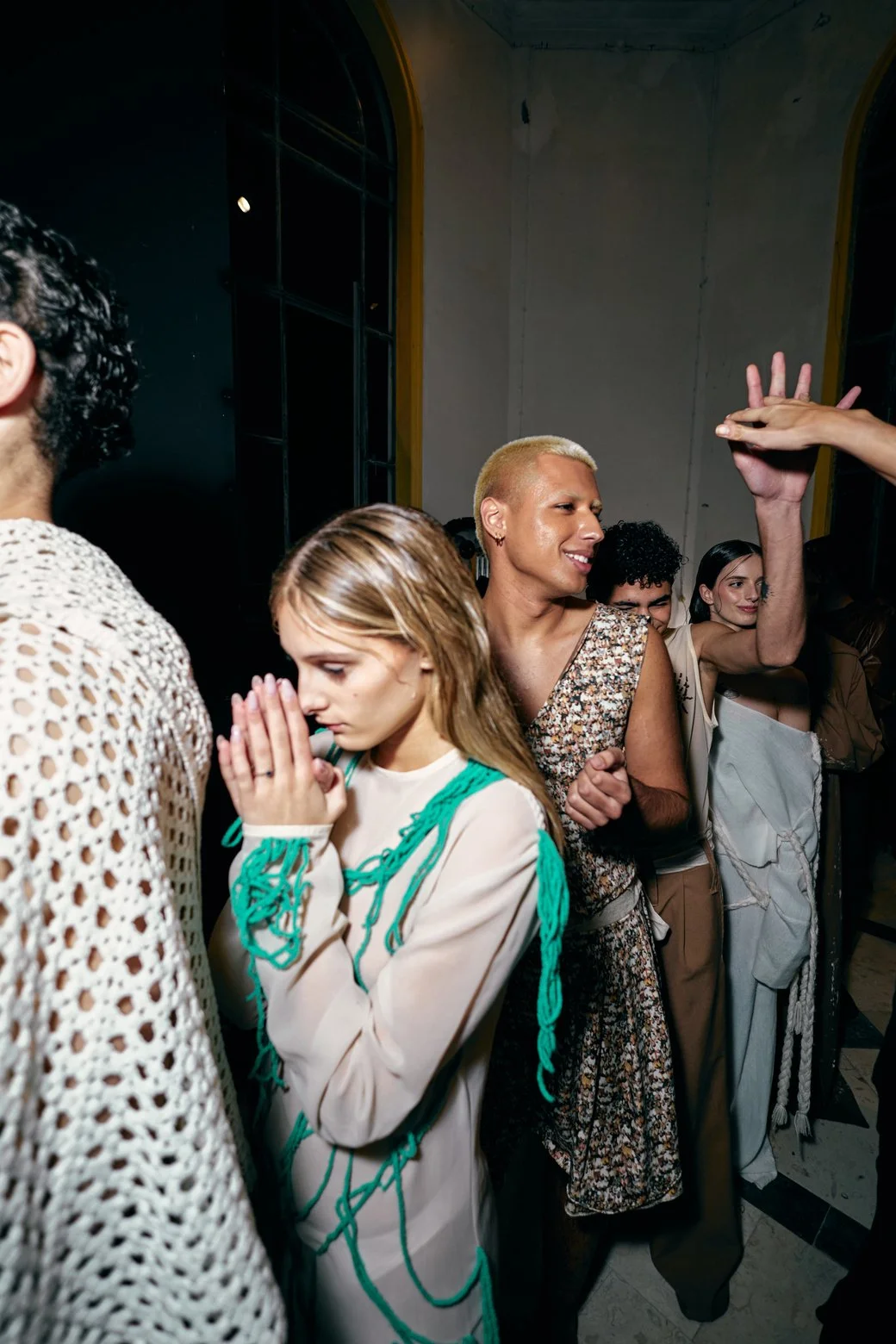 More than just a fashion show, EQUINOX provided an immersive experience for guests, mixing fashion, music, and performance: the soundtrack, created exclusively for the event, was performed live by musician Farwarmth (Afonso Arrepia Ferreira) on the keyboard; under the direction of Beatriz Pereira, a group of talented dancers brought movement and emotion to the collection; the makeup and hair, designed by artist Noir (Rita Oliveira), explored shapes and textures that complemented the disruptive and visionary aesthetic of the fashion show; and the participation of creatives such as Sara Diniz, who brought a unique artistic dimension to the event, was fundamental in highlighting the essence of the collection.