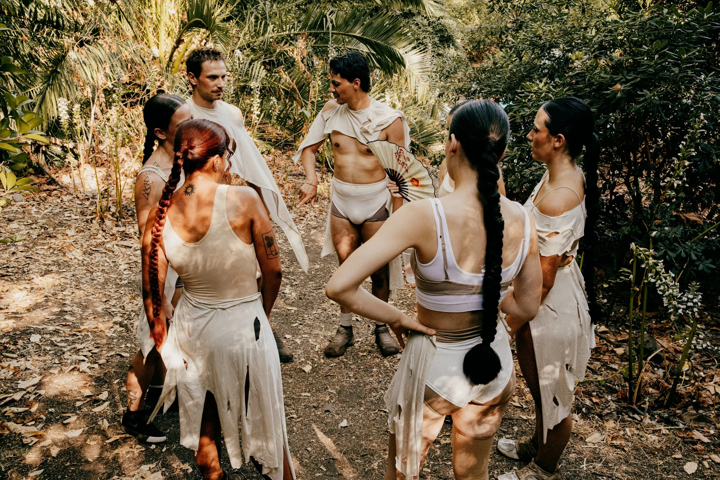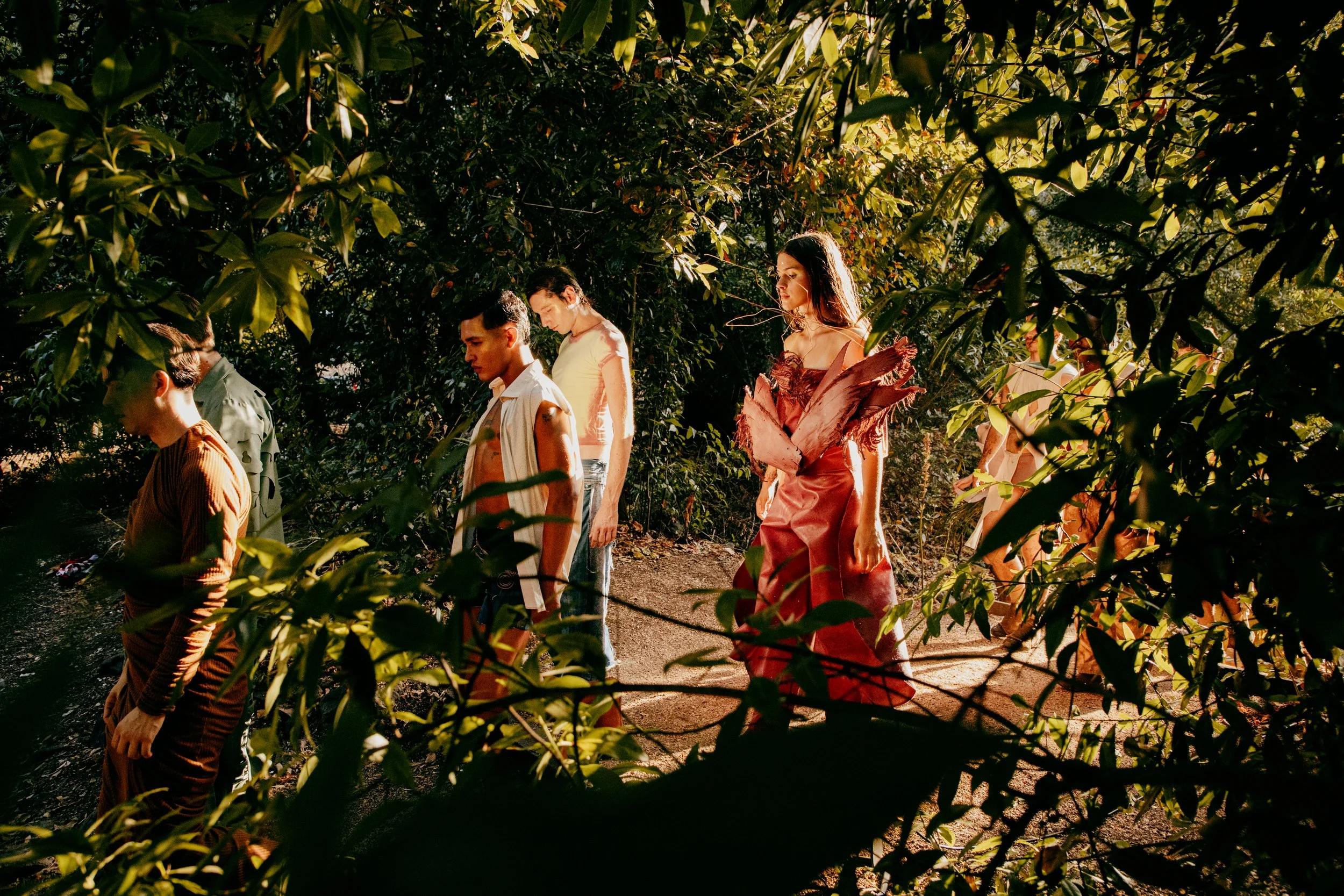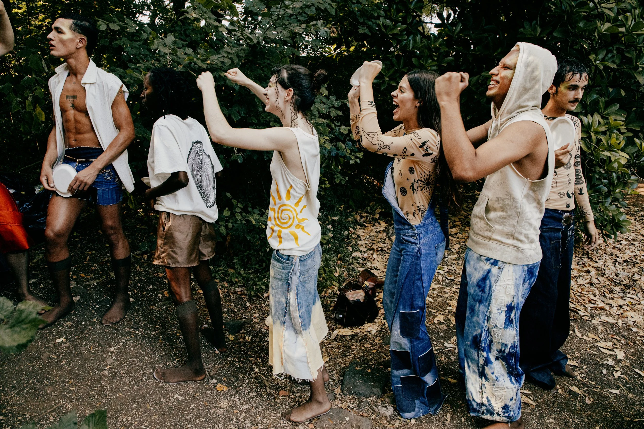 The arrival. Mythical beings emerge — forest creatures that only appear once a year, carrying fragments of nature at its most abundant: flowers, seeds, storms, roots, water, insects, fungi, decomposition.