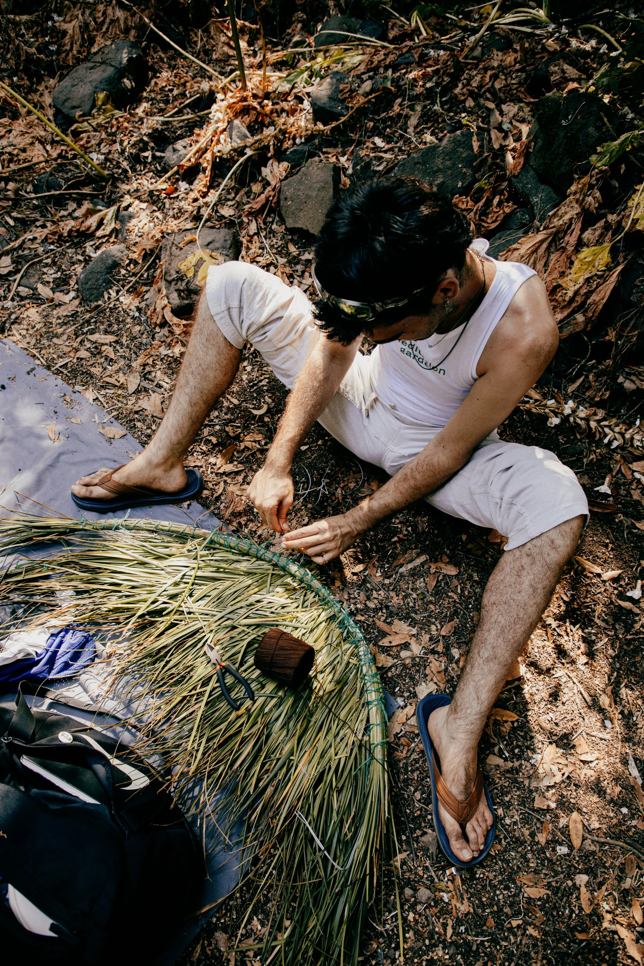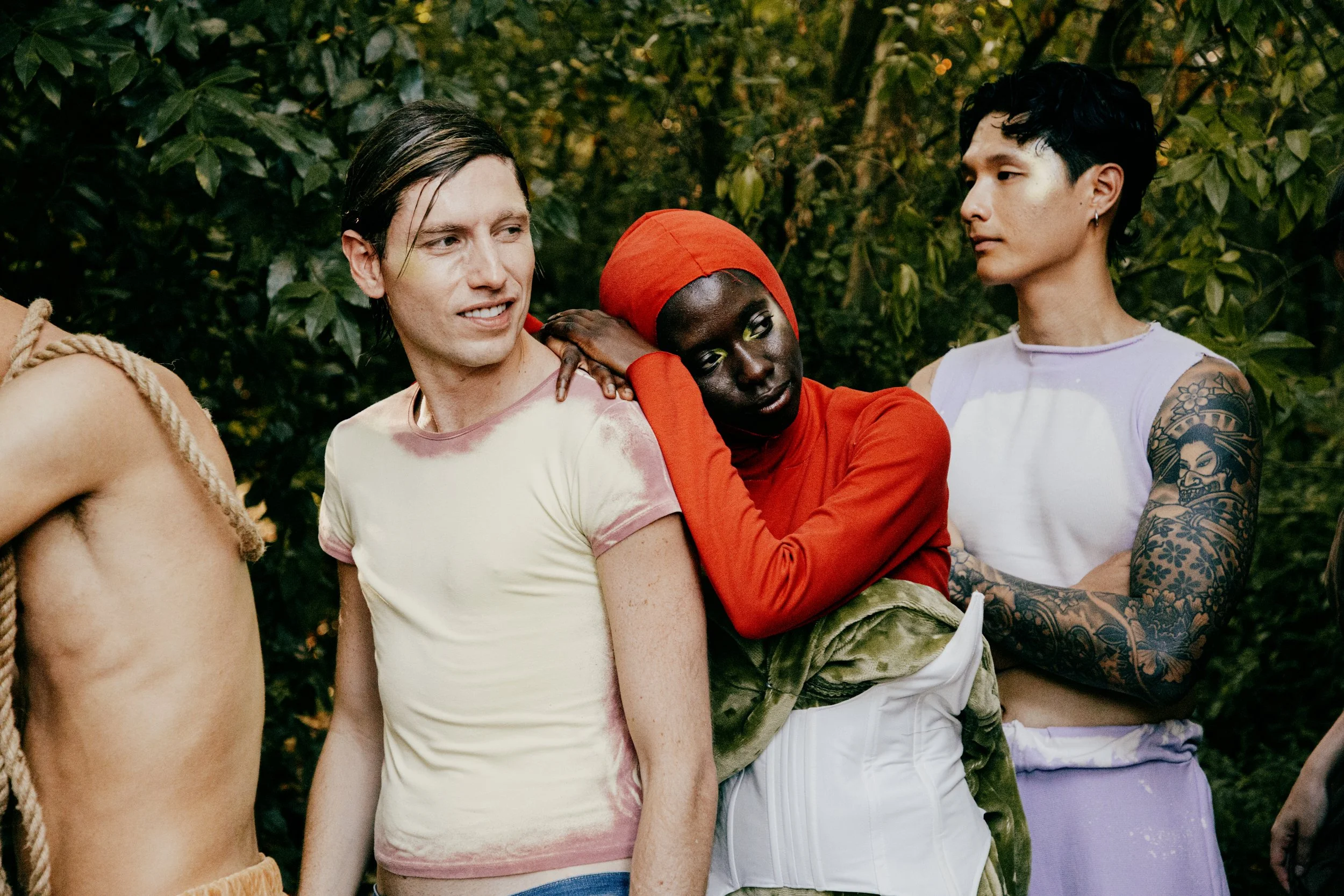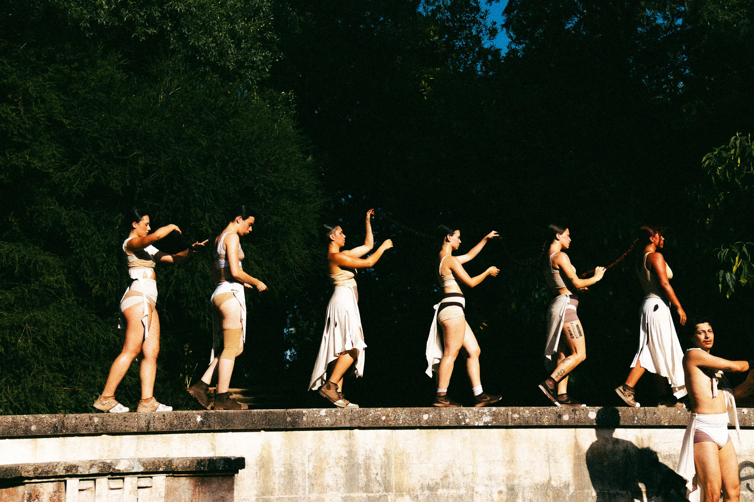 The arrival. Mythical beings emerge — forest creatures that only appear once a year, carrying fragments of nature at its most abundant: flowers, seeds, storms, roots, water, insects, fungi, decomposition.